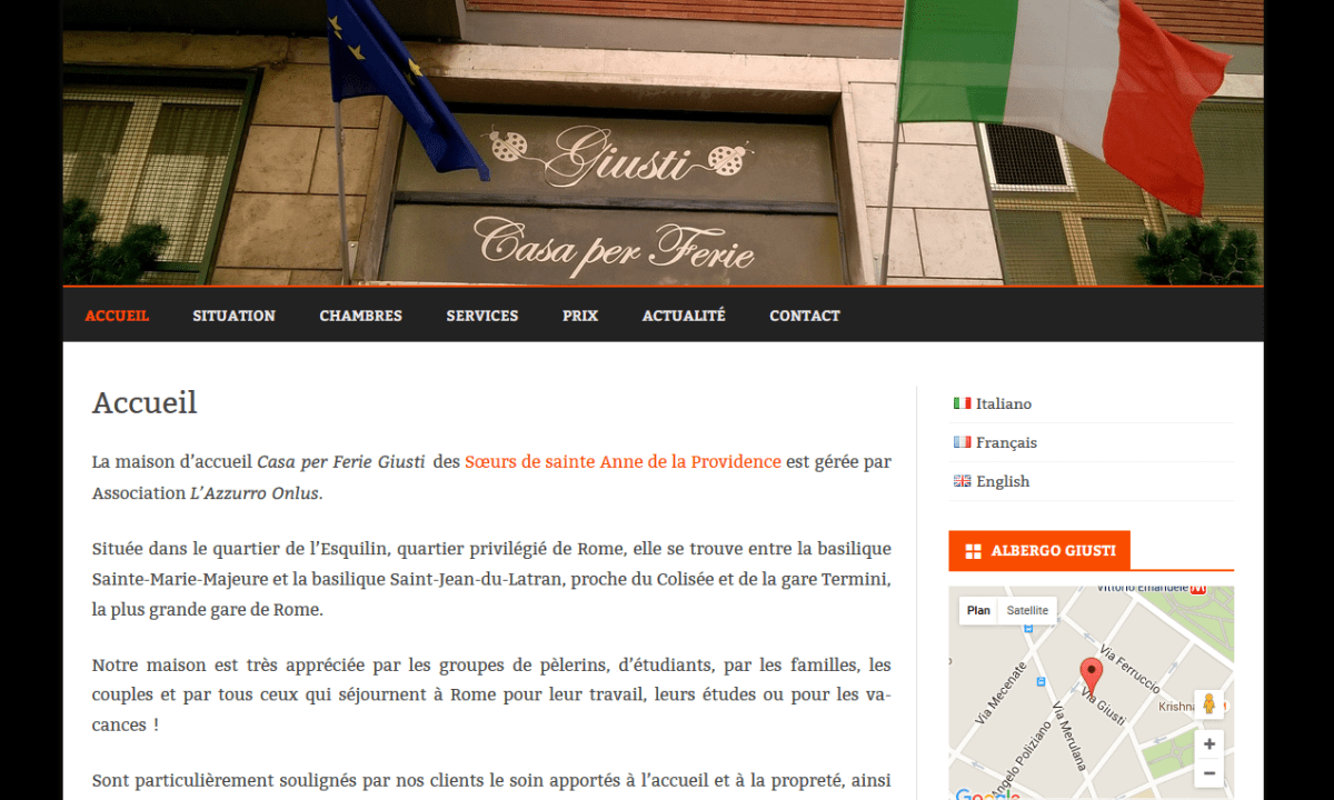2016 – Casa per ferie Giusti Publié 10 avril 2016 à 1271 × 763 dans « Casa per ferie Giusti » : un hôtel romain me confie son site ! ← Précédent
